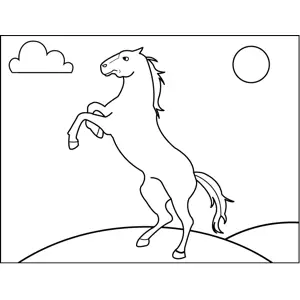 Angry Horse Printable Coloring Page, free to download and print. An angry horse rears up on its hind legs and kicks at the sky in this printable equine coloring page.