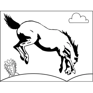 Bucking Horse Printable Coloring Page, free to download and print. Great for animal art projects, this printable animal coloring page depicts a horse jumping and bucking in the desert near a cactus.