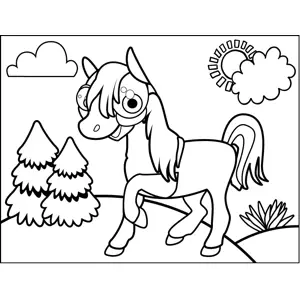 Excited Pony Printable Coloring Page, free to download and print. There is an excited pony cantering about the hills in this printable animal coloring page for young artists.