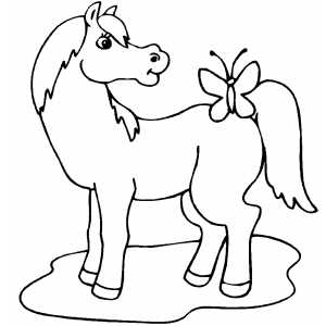 Horse With Butterfly coloring page