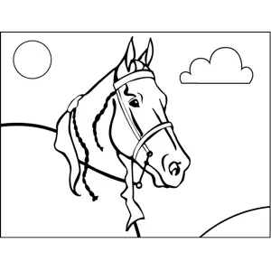 Horse with Reins Printable Coloring Page, free to download and print. Young artists who like to ride will enjoy this printable animal coloring page of a horse's head wearing a bridle and reins.
