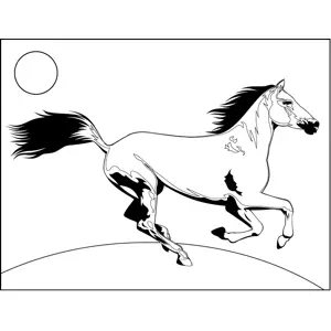 Realistic Running Horse Printable Coloring Page, free to download and print. Sporting great attention to detail and shadow, the running horse in this printable animal coloring page is very realistic-looking.
