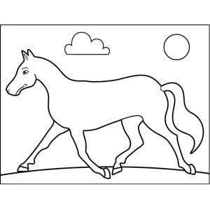 Trudging Horse Printable Coloring Page, free to download and print. With a sad frown, a horse slowly trudges across this printable animal coloring page.