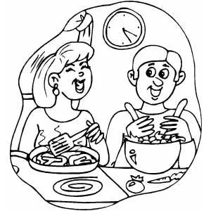 Couple Laughing And Cooking Dinner coloring page