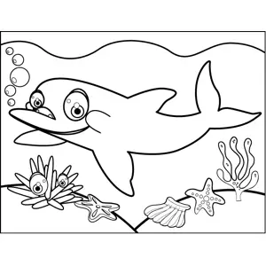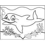 Adorable Dolphin Printable Coloring Page, free to download and print. An adorable dolphin smiles and blows bubbles on the ocean floor in this printable marine animal coloring page.