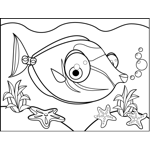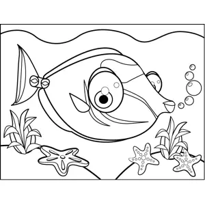 Big-Eyed Tropical Fish Printable Coloring Page, free to download and print. A striped fish with big, round eyes swims through the ocean in this printable sea life coloring page for kids.