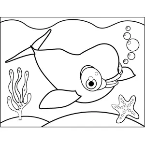 Cartoon Dolphin Printable Coloring Page, free to download and print. Drawn in a cute, cartoon style, this printable marine coloring page features an adorable, diving dolphin.