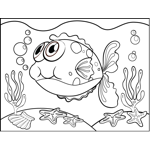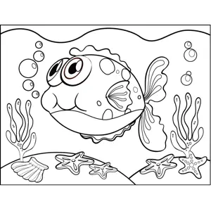 Chubby Fish Printable Coloring Page, free to download and print. Great for marine art activities, this printable ocean coloring page features a chubby fish with puffy cheeks.