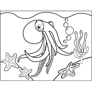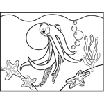 Curious Octopus Printable Coloring Page, free to download and print. A curious octopus propels through the ocean with its eight tentacles in this printable marine life coloring page.