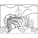 Cute Crawdad Printable Coloring Page, free to download and print. Coral, seashells and starfish make up the background of this printable marine coloring page showing a crawdad blowing bubbles.