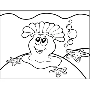 Cute Sea Anemone Printable Coloring Page, free to download and print. A cute sea anemone sways in the current of the sea in this printable ocean coloring page.