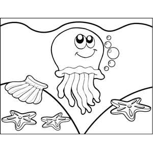 Daydreaming Jellyfish Printable Coloring Page, free to download and print. A jellyfish bobs up and down in the water and blows bubbles as it daydreams in this printable coloring page.