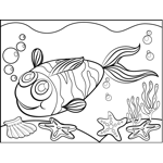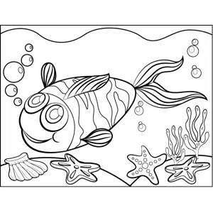 Diving Fish Printable Coloring Page, free to download and print. A stripe fish goes diving over the ocean floor in this printable marine life coloring page.