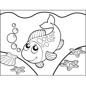 Diving Spotted Fish Printable Coloring Page, free to download and print. This printable ocean coloring page features a spotted fish diving through the sea and giving a shy smile.