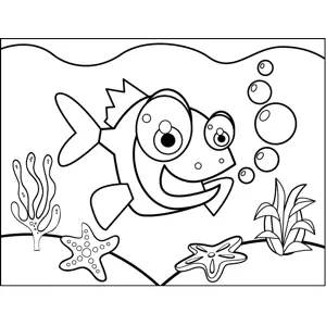 Excitable Fish Printable Coloring Page, free to download and print. Drawn in a cartoon style, this printable sea coloring page depicts an excitable gasping fish.