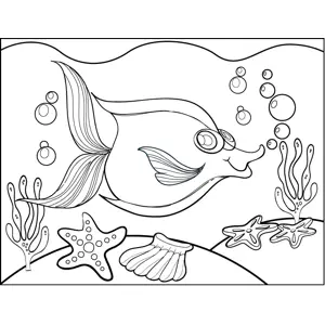 Fish and Sea Stars Printable Coloring Page, free to download and print. Sea stars and shells decorate the bottom of this printable ocean coloring page of a pretty, thin fish.