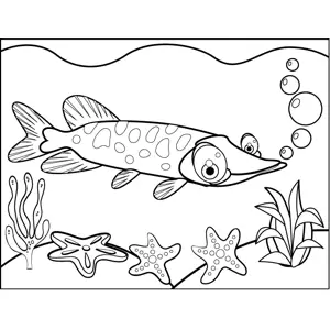 Fish with Spots Printable Coloring Page, free to download and print. The fish in this printable marine coloring page is long, thin and patterned with spots.