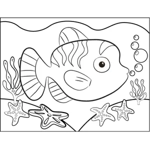 Fish with Stripes Printable Coloring Page, free to download and print. Decorated in stripes, the fish in this printable ocean coloring page stares blankly through the sea.