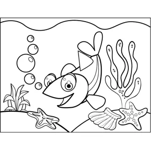Friendly Fish Printable Coloring Page, free to download and print. The friendly fish in this printable ocean coloring page features a diving, friendly fish blowing bubbles.