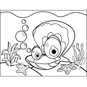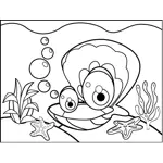 Happy Clam Printable Coloring Page, free to download and print. Two big eyes stare out of this cute, happy clam while surrounded out of seaweed and sea stars.