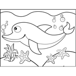 Happy Dolphin Printable Coloring Page, free to download and print. A happy dolphin flips and frolics in the ocean in this printable coloring page for kids.