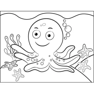 Mischievous Octopus Printable Coloring Page, free to download and print. The mischievous octopus floats along the ocean floor with its tentacles extended.