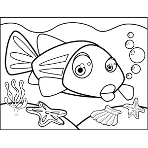 Nervous Fish Printable Coloring Page, free to download and print. The nervous crab casts an anxious look through the water of this printable marine coloring page.