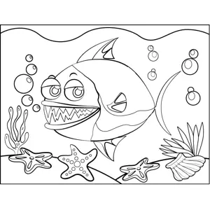 Piranha Printable Coloring Page, free to download and print. The suspicious piranha in this printable marine coloring page is hunting with a mouthful of sharp fangs.