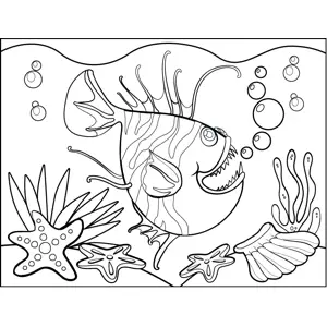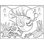 Round Striped Fish Printable Coloring Page, free to download and print. This fanged, electric fish is shaped like a bulb and great for marine art activities.