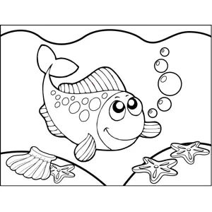 Shy Spotted Fish Printable Coloring Page, free to download and print. This spotted fish bows its head and gives a shy smile as it blows cautious bubbles.