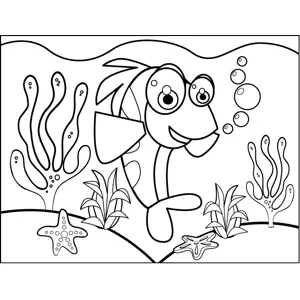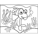 Splashing Fish Printable Coloring Page, free to download and print. A fish splashes its fins through the waves in this printable marine coloring page for young artists.
