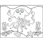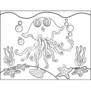 Surprised Jellyfish Printable Coloring Page, free to download and print. A surprised jellyfish clenches its tentacles and bears a frightened expression.