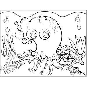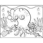 Surprised Octopus Printable Coloring Page, free to download and print. A surprised octopus raises its eyebrows and blows nervous bubbles in this printable sea coloring page.