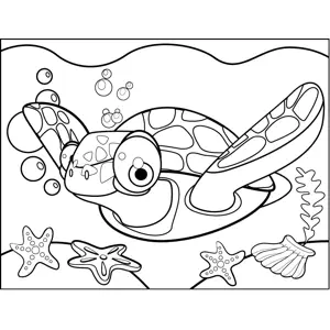 Swimming Turtle Printable Coloring Page, free to download and print. Young artists will love coloring in the pattern on this happy, swimming turtle's shell.