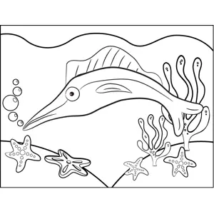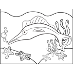 Thin Fish Printable Coloring Page, free to download and print. A thin fish bucks and cavorts through the kelp and seaweed on the floor of the ocean in this printable coloring page.