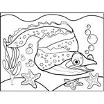Wriggling Eel Printable Coloring Page, free to download and print. There's a lot of great detail to fill in in this printable coloring page of an eel wriggling through the sea.