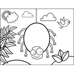 Happy Spider Printable Coloring Page, free to download and print. The happy spider in this printable insect coloring page is descending on a silky web and waiting for a meal.