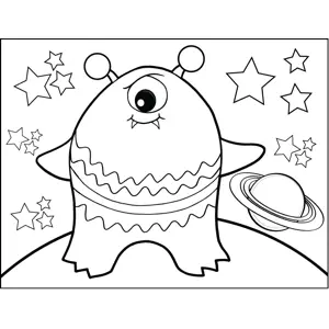 Big Monster Printable Coloring Page, free to download and print. Decorated with stars and planets, this printable outer space coloring page features a striped Cyclops alien.