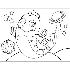 Goofy Space Fish Printable Coloring Page, free to download and print. If you like silly creatures, you'll love coloring in the goofy alien fish from outer space in this printable monster coloring page.