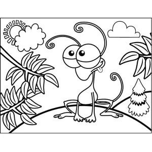 Insect Monster Printable Coloring Page, free to download and print. The insect monster resembling a praying mantis in this printable animal coloring page is a cute creature with big eyes and a forest home.