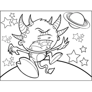 Six-Horned Monster Printable Coloring Page, free to download and print. Covered in striped horns, fangs and a pointy tail, the alien in this printable monster coloring page is jumping up and down angrily.