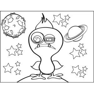 Suspicious Monster Printable Coloring Page, free to download and print. A bird-like alien creature squints suspiciously in this printable monster coloring page.