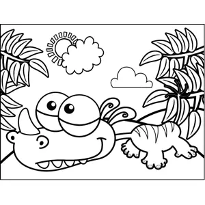 Zebra Monster Printable Coloring Page, free to download and print. Set in a jungle of leafy ferns, this printable monster coloring page depicts a cute little creature that is a cross between a zebra, a rhino and a crocodile.
