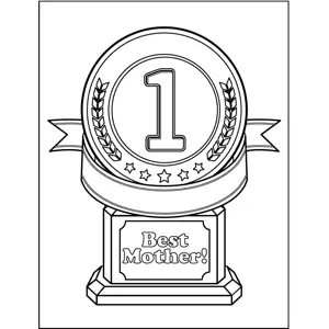 Best Mother Trophy Printable Coloring Page, free to download and print. A "#1 Best Mother" trophy is the subject of this printable Mother's Day coloring page for kids.