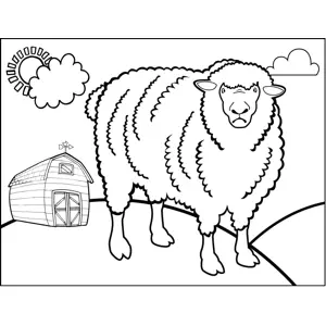 Angry Sheep Printable Coloring Page, free to download and print. This printable coloring page features an extremely disgruntled sheep standing and looking sad and fluffy near a barn.