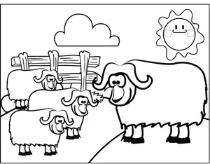 Big Horned Sheep Printable Coloring Page, free to download and print. Perfect for classroom activities, this printable coloring page shows four big-horned rams fenced in on a farm.