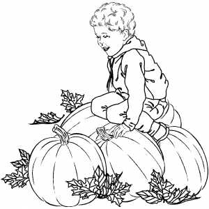 Boy Sitting On Pumpkins coloring page