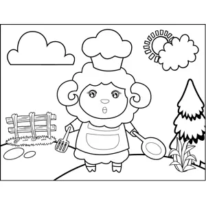 Chef Sheep Printable Coloring Page, free to download and print. Cooks and farmers will both enjoy this printable animal coloring page of a fluffy sheep wearing a chef hat and holding a spatula and frying pan.