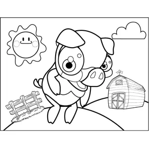 Dancing Pig Printable Coloring Page, free to download and print. This printable farm coloring page features a cute, happy pig dancing on its hind legs near a fence and a barn.