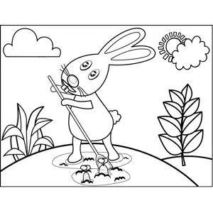 Rabbit Farmer Printable Coloring Page, free to download and print. Teachers of young students can teach about farm animals with this printable coloring page of a rabbit planting carrots.